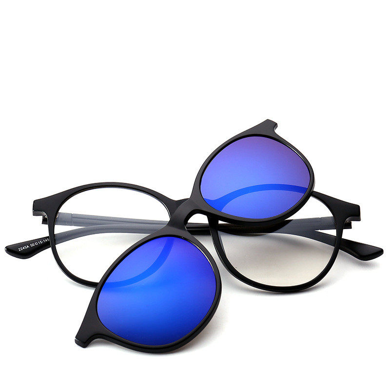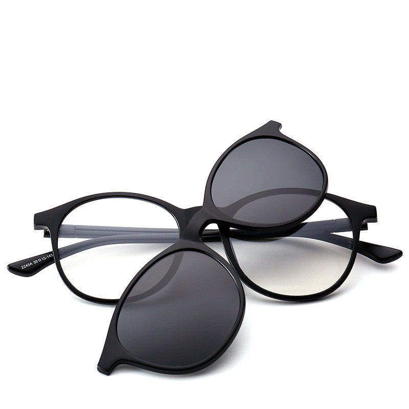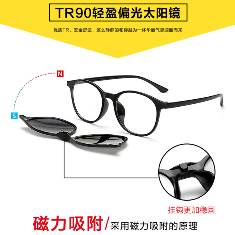 New magnetic attraction set mirror Dual Myopia Sunglasses Female Polarized Clips Round Frame Glasses Driver Driving Mirror Man-Taobao