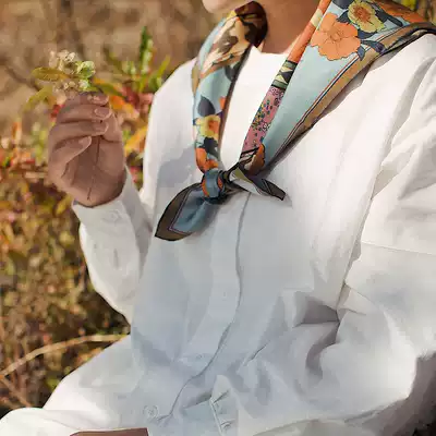 DOUilus Zhou Xiaodou original double-sided printing Bright Star Silk twill silk square towel Mulberry silk Retro