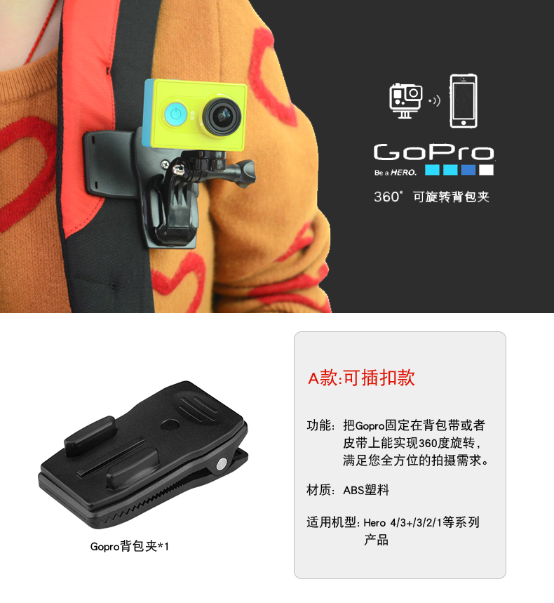 Gopro Mountain dog SJ4000 motion camera accessories Shoulder Bag Clamp Cap Clip 360-degree multifunction adjustment clip