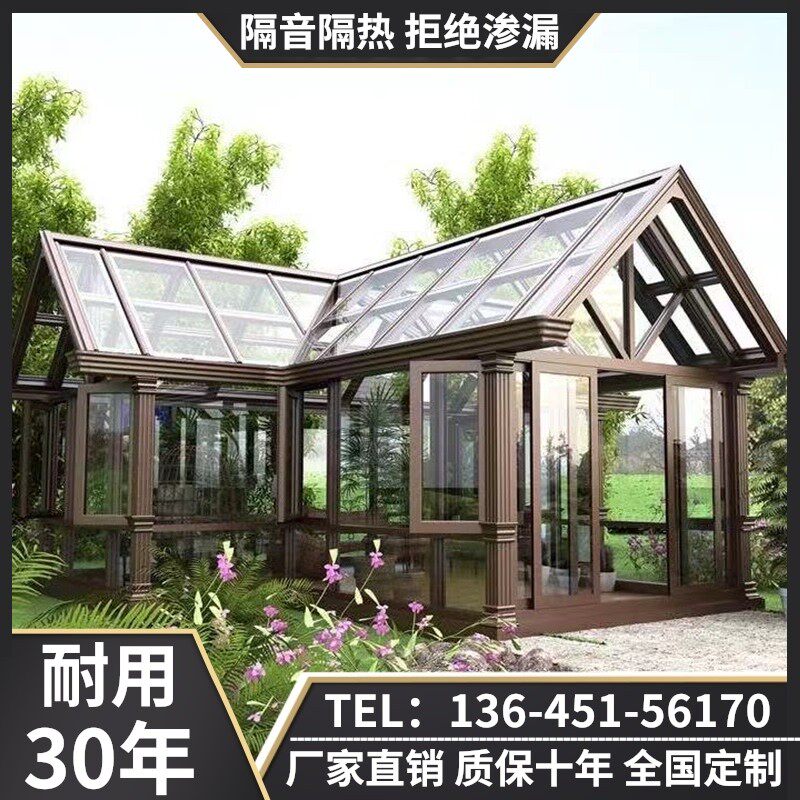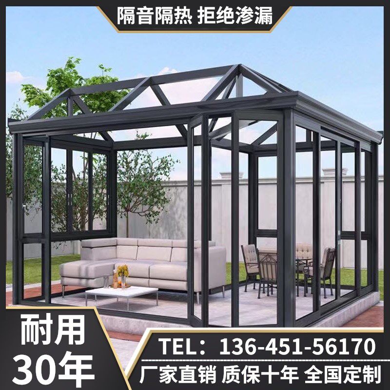 Nanjing glass room aluminum alloy sunshine room custom tempered glass roof terrace seal balcony doors and windows steel frame roof