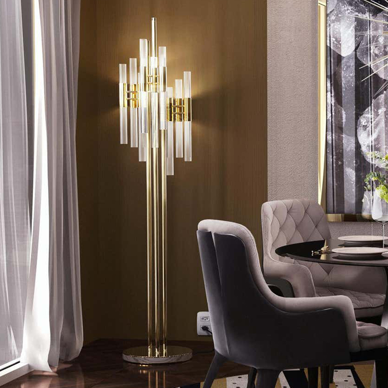 Postmodern American style living room bedroom crystal glass color floor lamp living room luxury model house sales office floor lamp