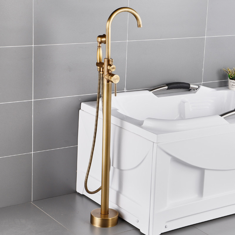 All copper antique cold and hot floor tub tap vertical stand-alone wooden barrel column wall mounted flower sprinkle