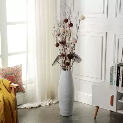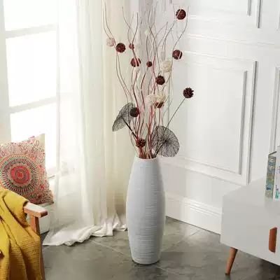 Modern simple European-style ceramic floor-to-ceiling vase large living room decoration decoration simulation flower dried flower arrangement white flower device