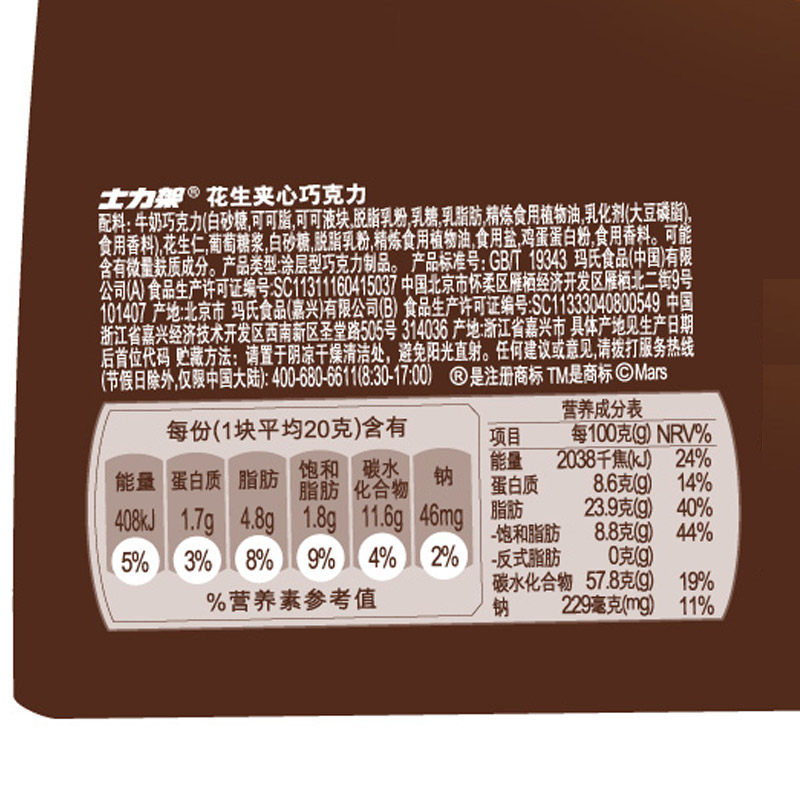 Milk Chocolate Peanut Kernel glucose syrup White Sugar Skim Milk Powder, etc.