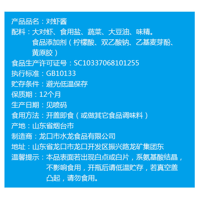 Water dragon prawn sauce Lobster sauce Shandong specialty Yantai shrimp sauce ready-to-eat Hoisin sauce 180g2 bottles