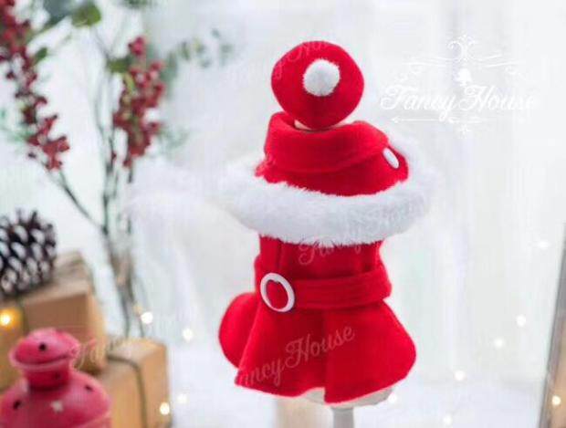 FANCY HOUSE Pet Clothes Big Red New Year Christmas Cashmere Pet Couple Coat Three Piece Gift Box