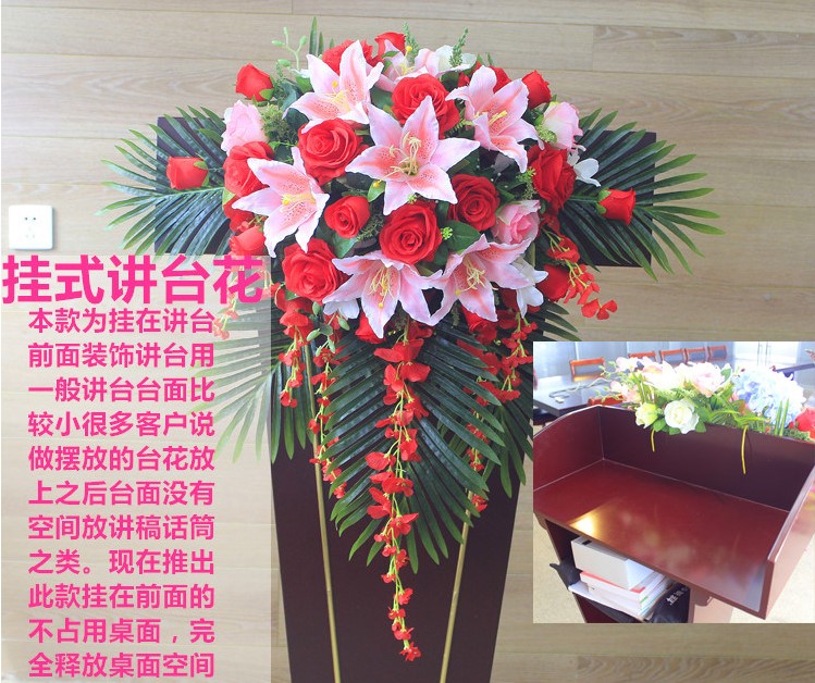 Podium Flower Emulation Flower Meeting Table Fake Flower Pendulum Pieces Chairwoman's Table Hanging Flower Speeches Desk Sagging Decorative Flower Hanging Flower Art