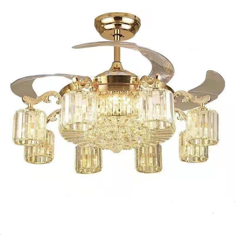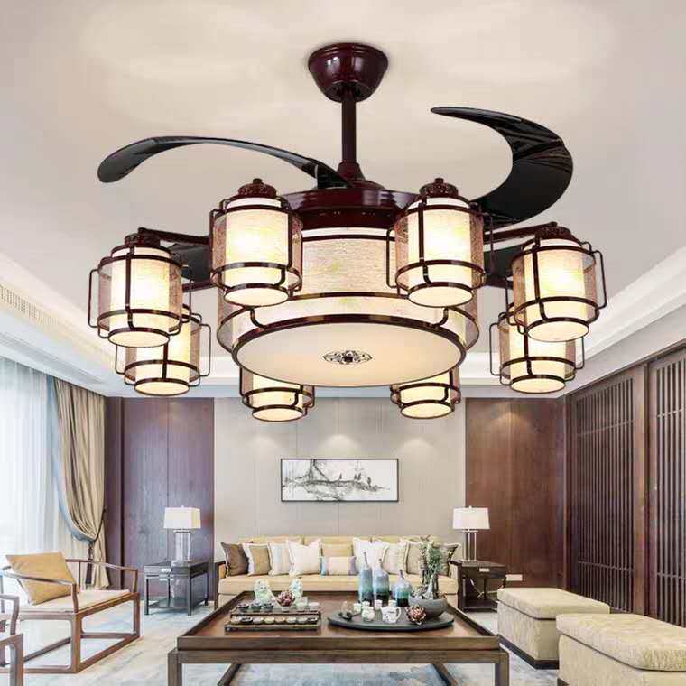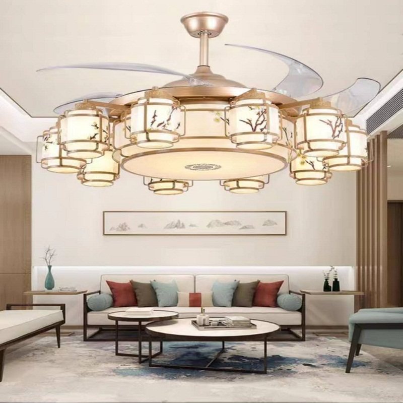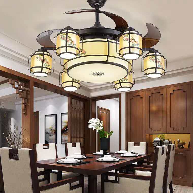 New Chinese style inverter ceiling fan lamp Chinese style invisible ceiling fan lamp American style living room dining room retro large chandelier package installation