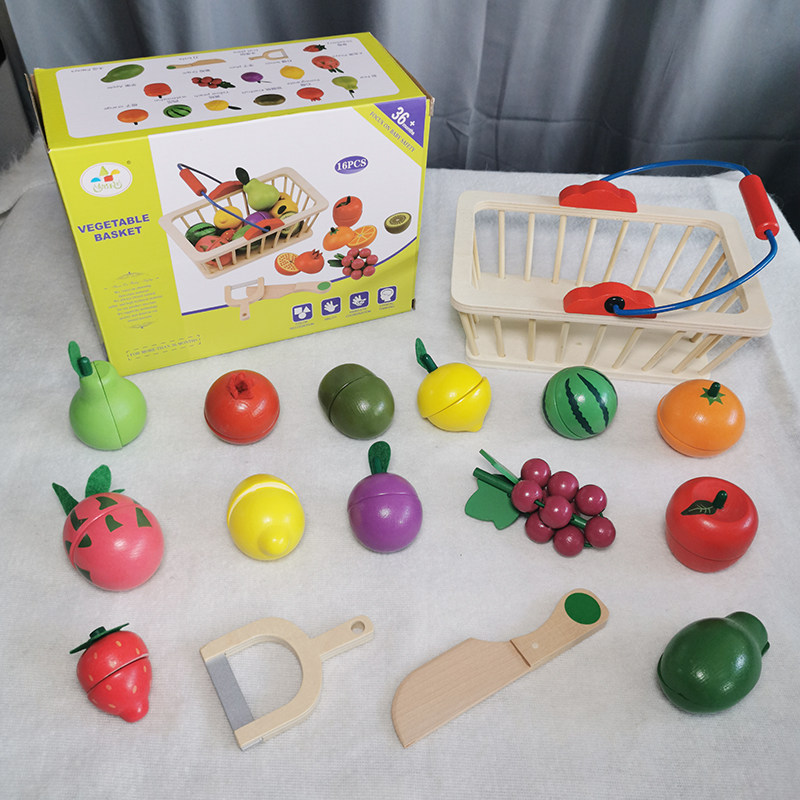 Wooden basket fruit and vegetable cutting music toy magnet girl cutting look at the suit simulation to play the wine Wooden magnetism