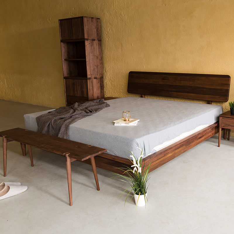 Black walnut single double bed 1 51 8 simple Nordic Japanese style North American black walnut pure solid wood export environmental protection mortise and tenon