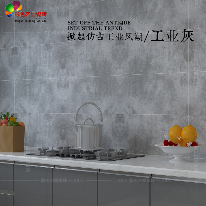 Cement brick Powder room kitchen toilet bathroom 300 wall tiles 600 earth tiles Living room Nordic industrial gray tiles