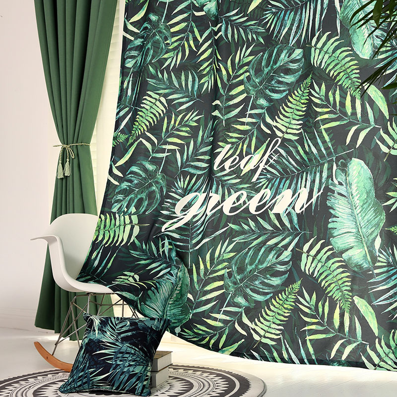 Custom Nordic style Simple modern green finished bedroom living room rainforest processing finished curtains