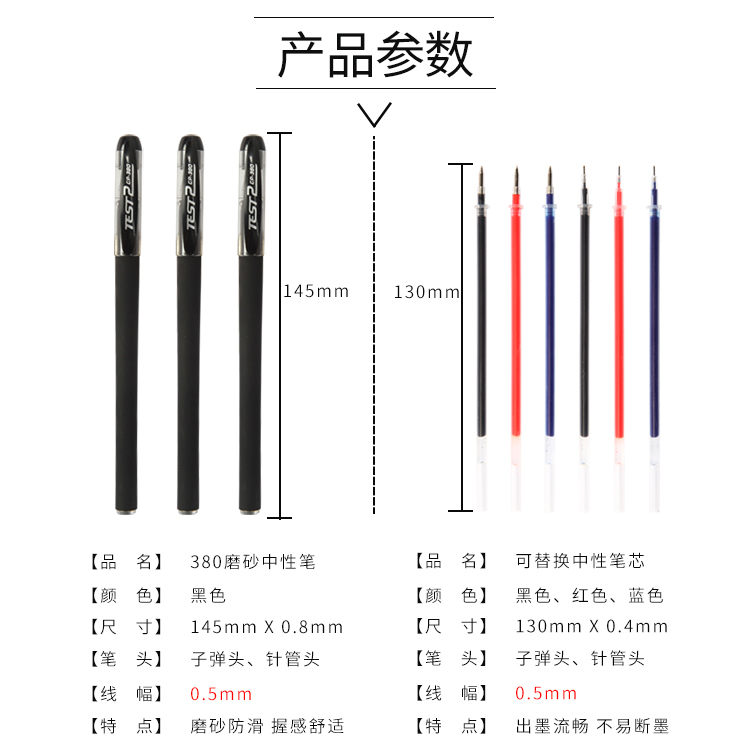 Gel pen signature pen 0 5mm student water-based pen wholesale refill gel pen water-based pen 0 38 black refill