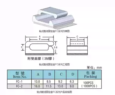 Fiber optic flat network route finishing fixed clip adhesive 3m glue FC series wire clip