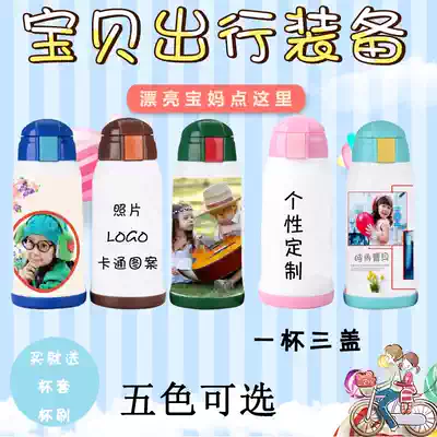 DIY personality children's straws water cup thermos cup kindergarten baby baby kettle dual-purpose lettering custom printed photo