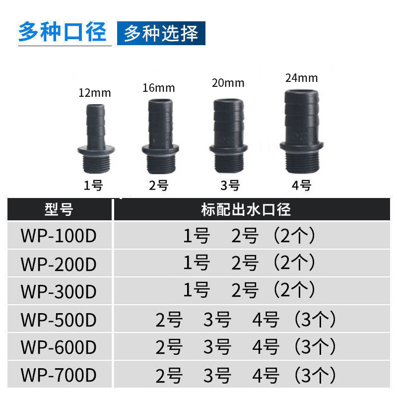 WP-100D (7 watts)Water supply pipe WP-200D(25 watts) Water supply pipe WP-300D(35 watts)Water supply pipe WP-500D(55 watts) Water supply pipe WP-500D (55 watts) Water supply pipe WP-500D (55 watts) Water Supply pipe WP-500D (55 watts) Water supply pipe