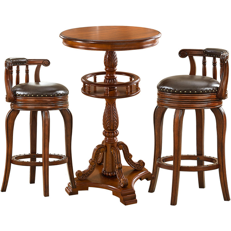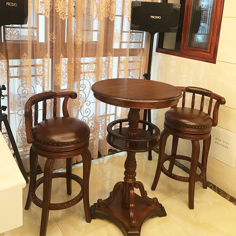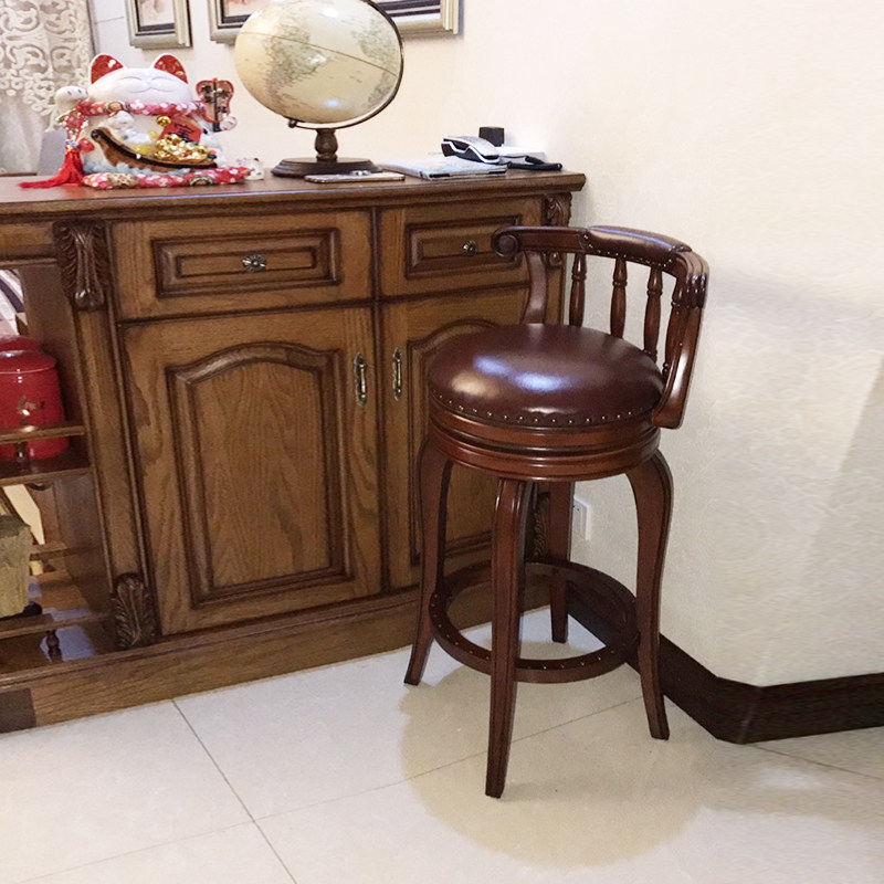 American bar chair Solid wood bar chair stool Bar table Household American bar stool Backrest bar chair Rotating high stool