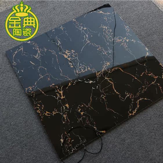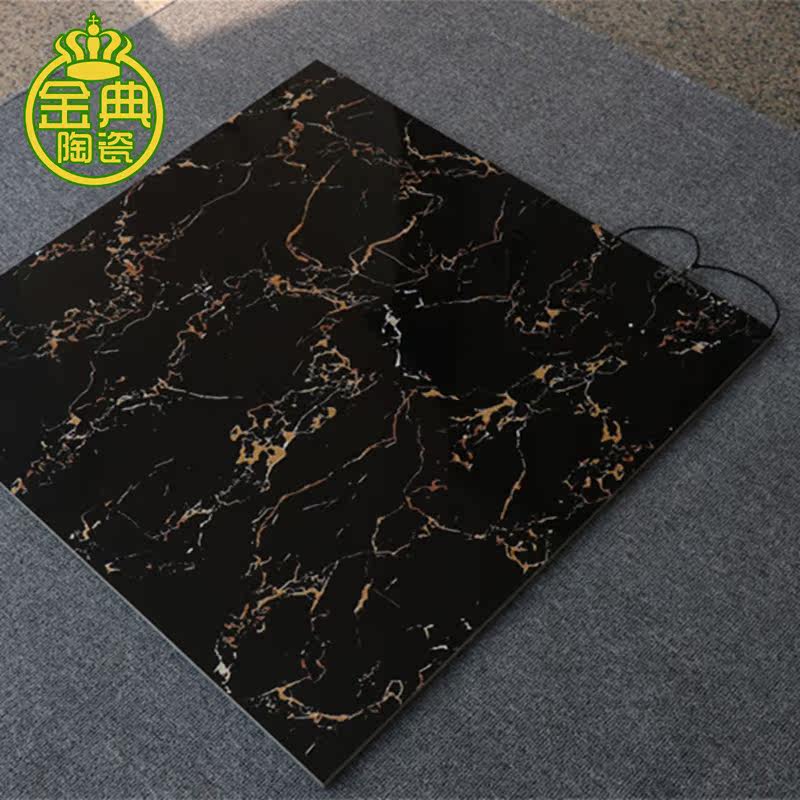 Floor tiles 800×800 living room bedroom floor tiles fully polished glaze non-slip wear-resistant black gold flower factory direct sales