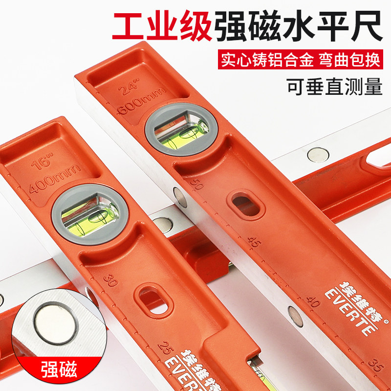 Solid cast aluminum horizontal ruler with strong magnetic heavy aluminum alloy ruler German anti-fall balance ruler High precision flat water ruler