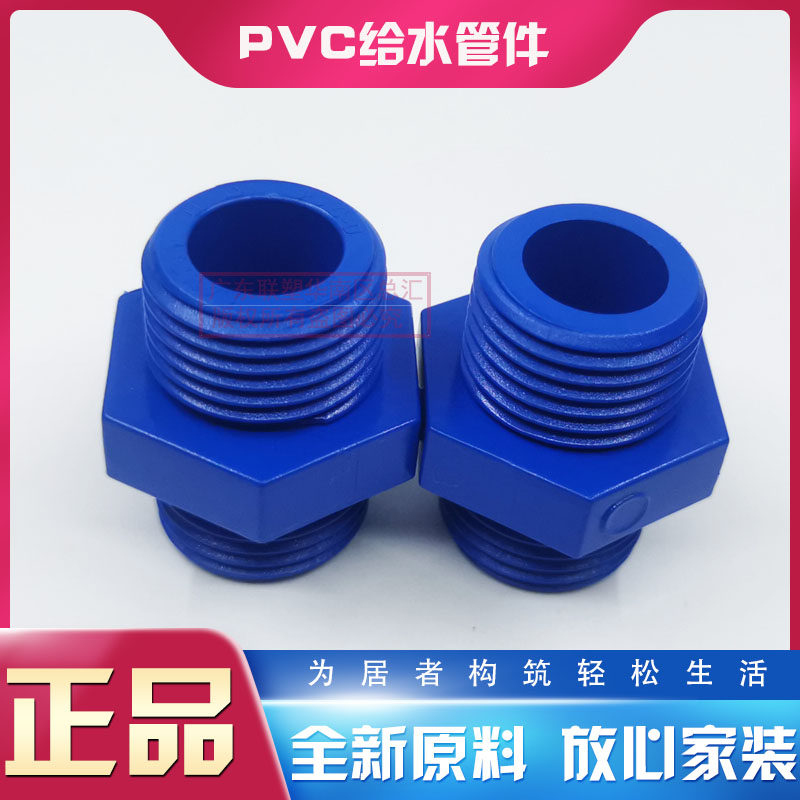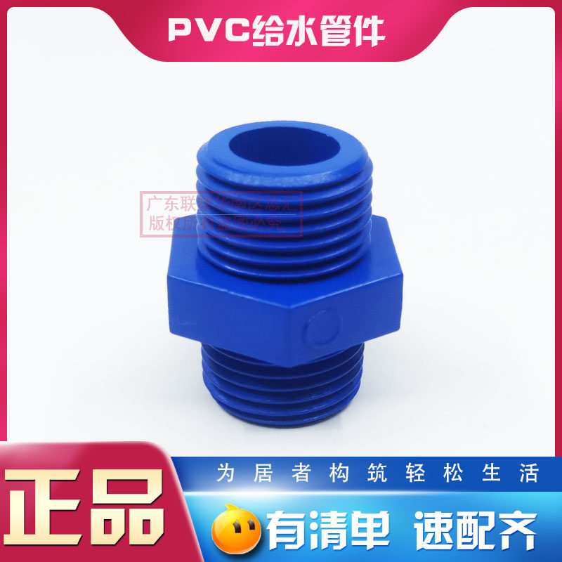 United plastic PVC-U blue water double head tooth straight 4 points 6 points 1 inch double outer tooth direct head on two sides