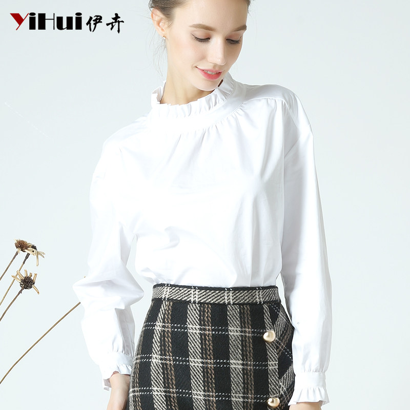 2021 Spring Dress New Cotton Shirt Women's Dress Shirt White Blouse Long Sleeve Large Size Slim Fit Professional Undershirt Career