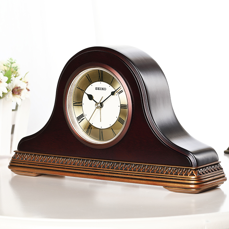 Japanese Seiko Creative Fashion Retro Eurostyle Home Office Mute Real Wood Quartz Seat Clock QXE018