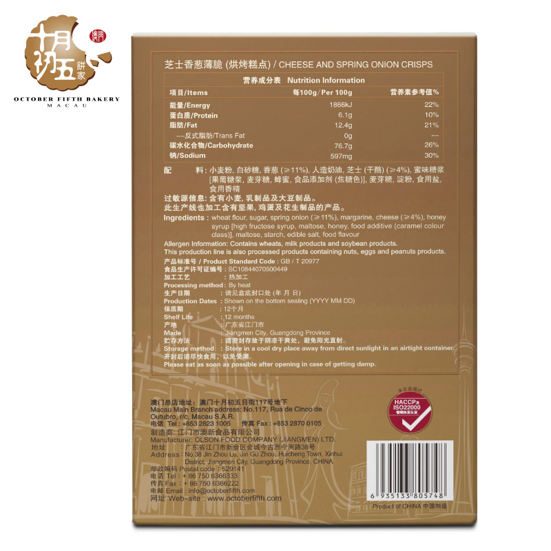 4 boxes October First five cheese scallions thin and crisp 130g ginger juice thin and crisp biscuit Cereal Pastry Casual Snacks