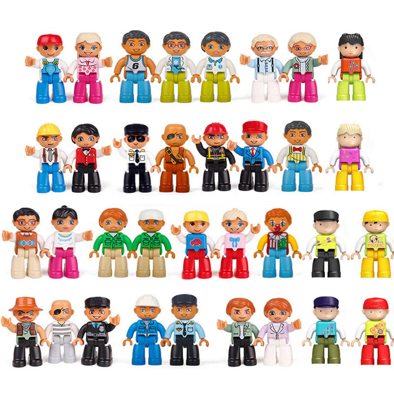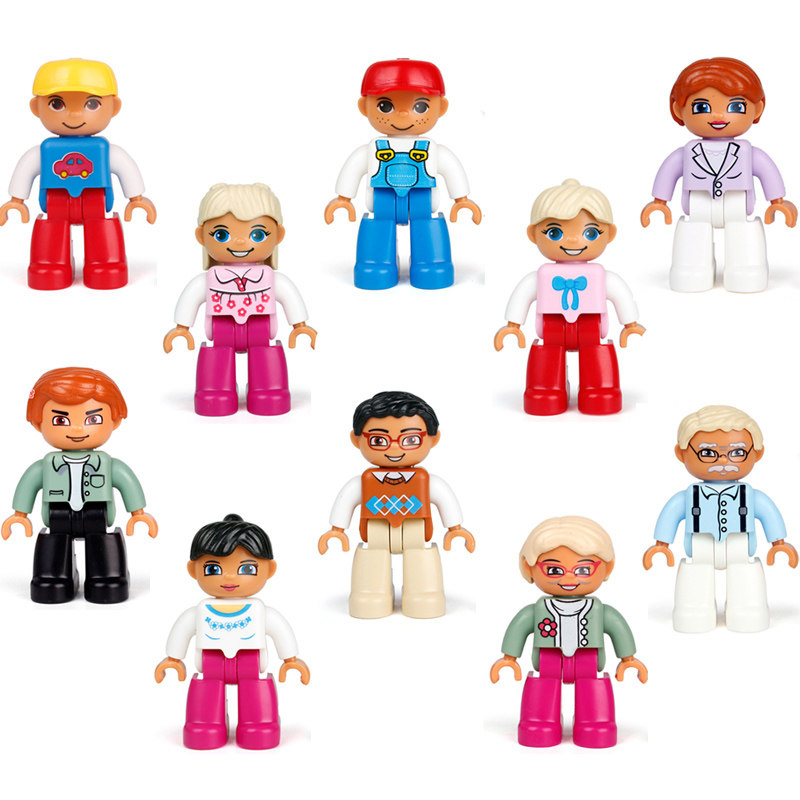 People with large particles assembling blocks figures role of dolls boys and girls baby children puzzle toys