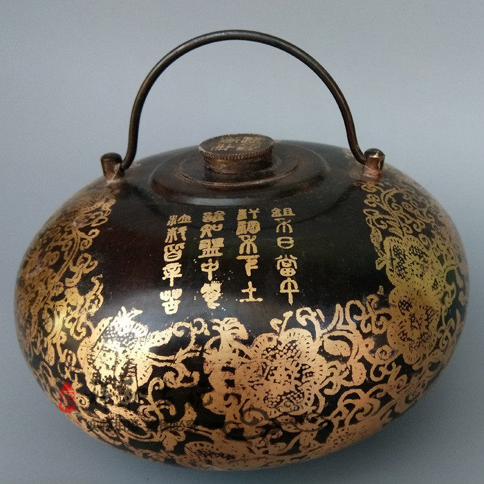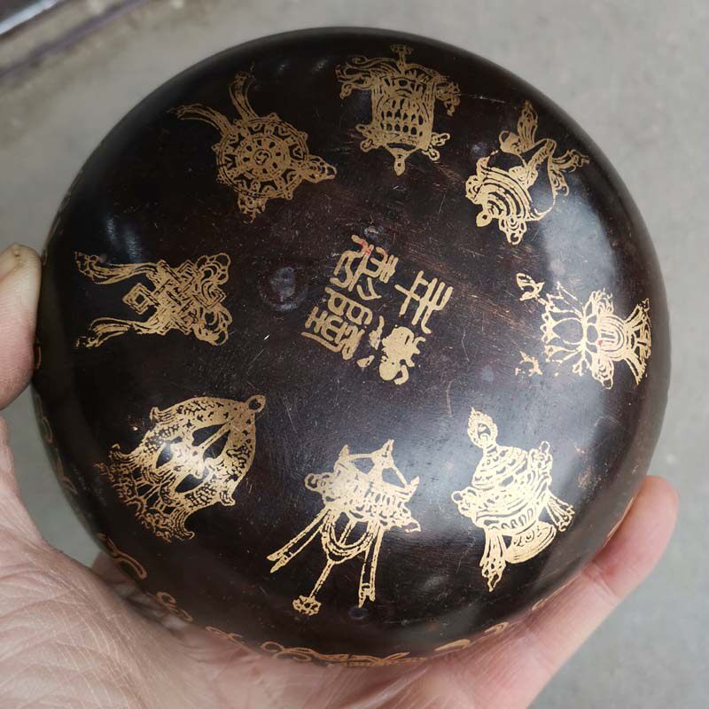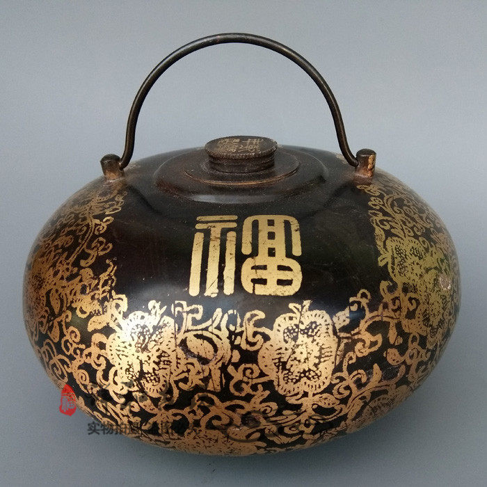 Antique pure copper blessing word hand warm pot soup woman Huai Stove soup cover hot water bottle Hand warm treasure Antique bronze collection