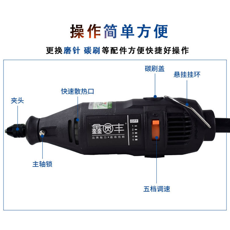 Speed-adjustable small electric grinding miniature electric drill jade engraving machine honey wax polished and polished household multifunctional electric drill
