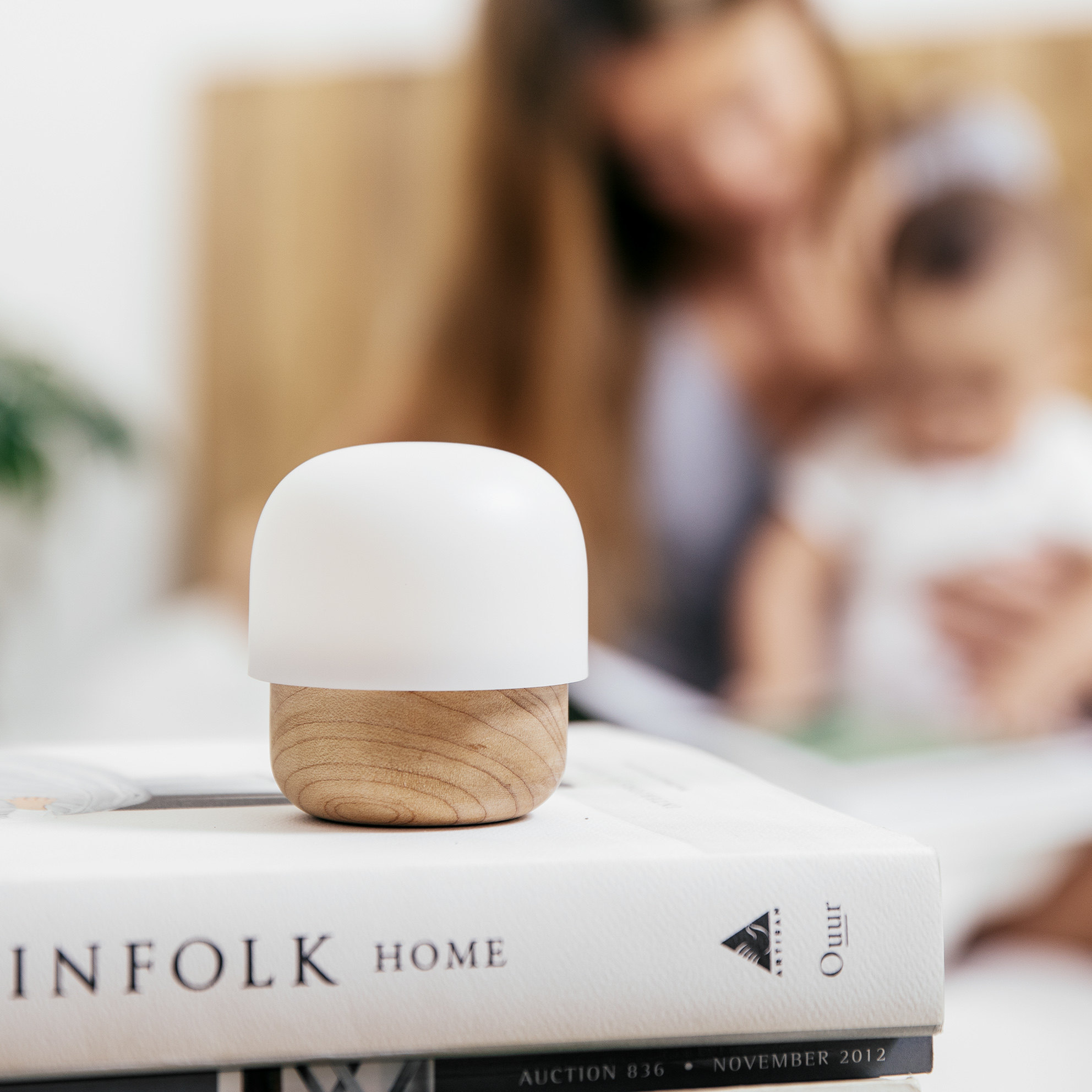 There are wooden Nordic solid wood mushroom night light sleep light bedroom bedside lamp table lamp charging creative breastfeeding Japanese style