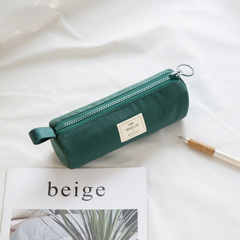Nylon Pen Bag-Dark Green-Dark Green Ring Zipper Spot