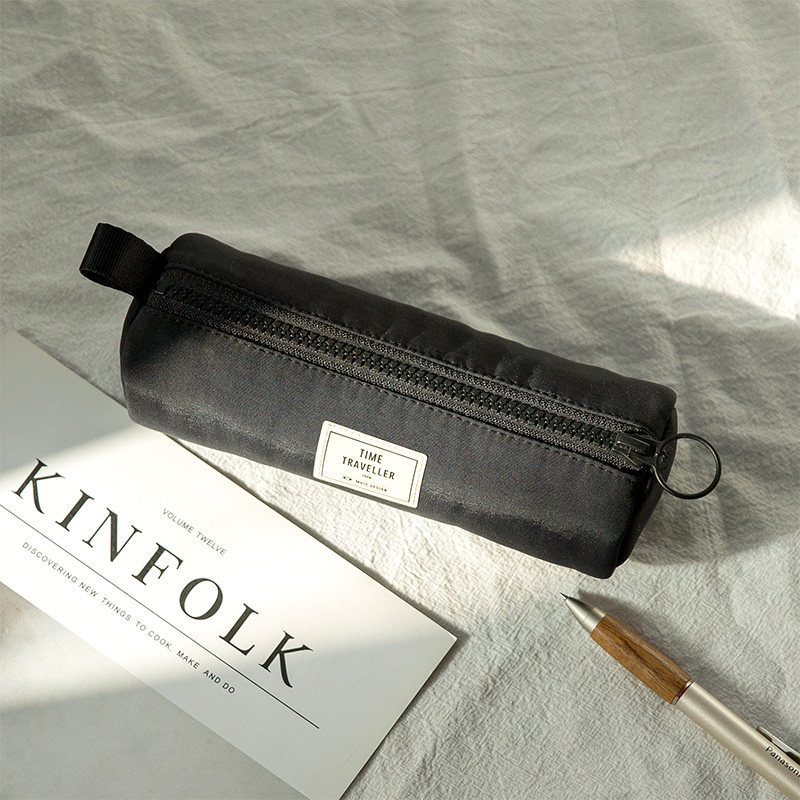 Nylon Pen Bag-Ink Black-Black Ring Zipper Spot