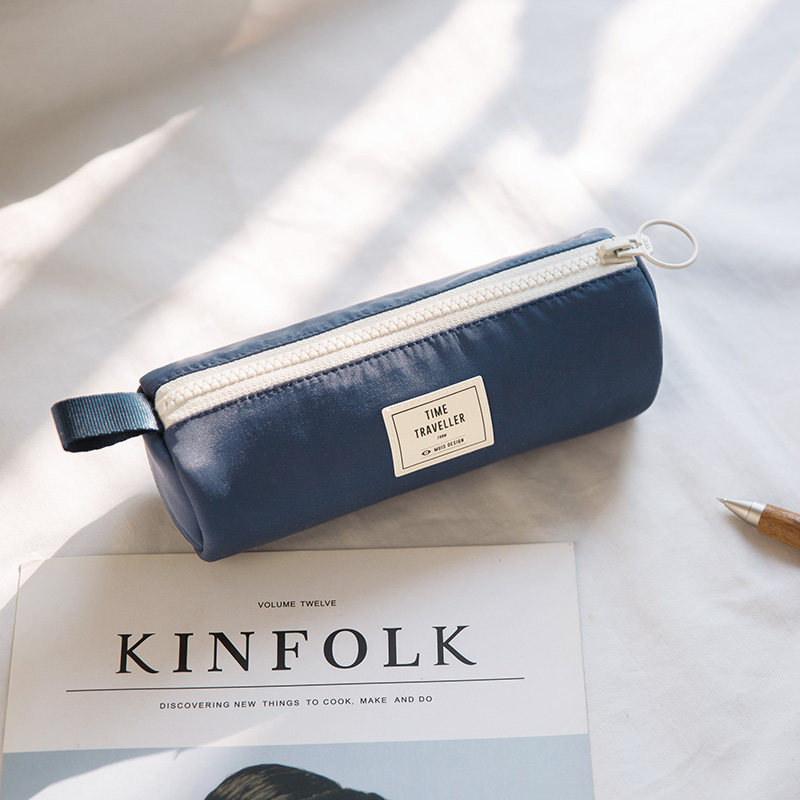 Nylon Pen Bag-Deep Blue-Deep Blue Ring Zipper Spot
