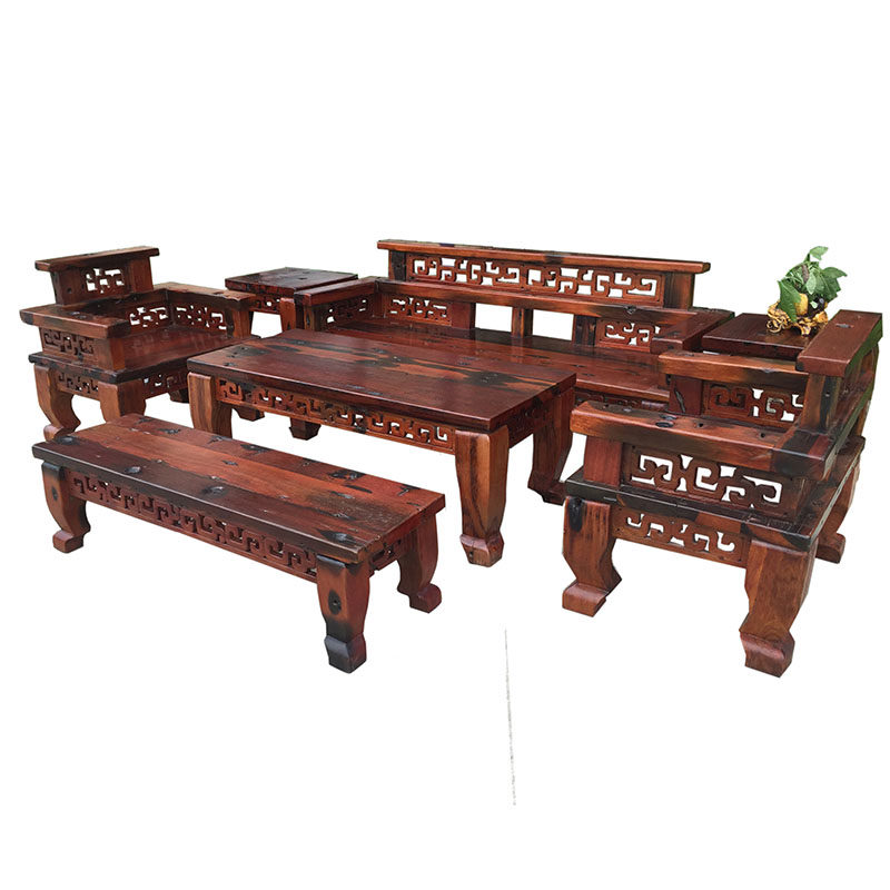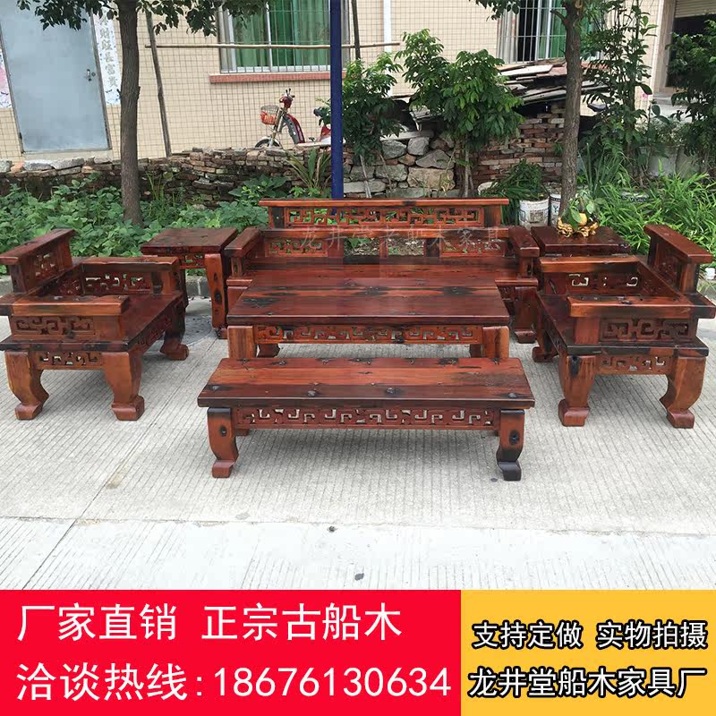 Old Boat Wood Sofa Solid Wood Sofa Living Room Sofa Villa Clubhouse Sofa ten thousand Words Sofa Chair Ship Wood Furniture Special Price