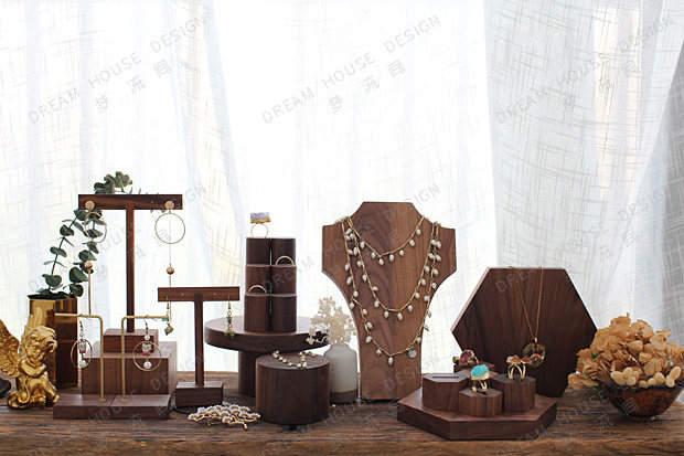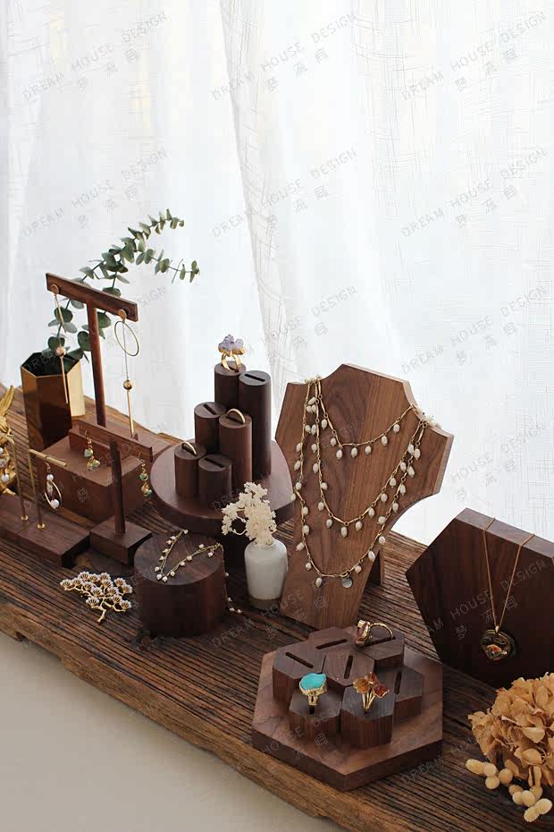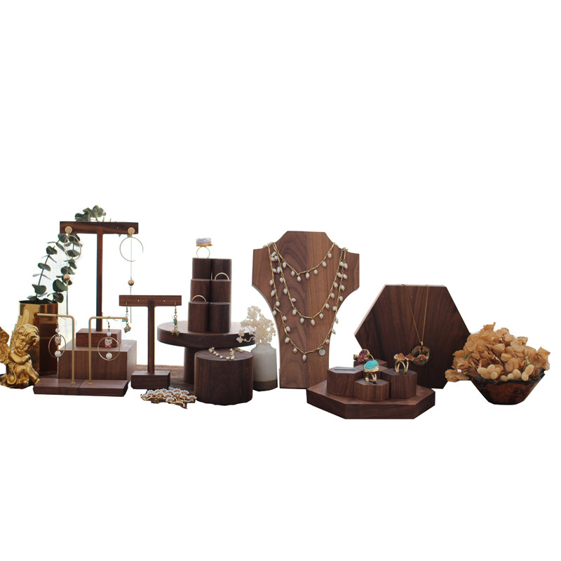 Black Walnuts Wooden Humanoid Necklace Rack Hexagon Walnuts Wood Plate Hexagon Dei set brown 15CM modified color round plate brown Cube 10 * 10 * 5cm brown wooded cylinder 8 * 8 * 6