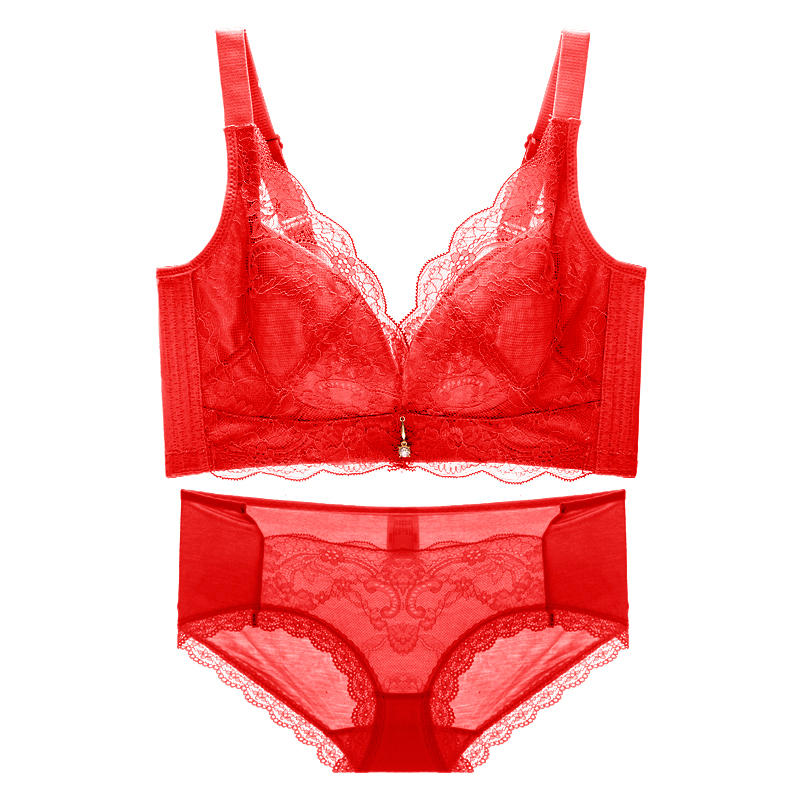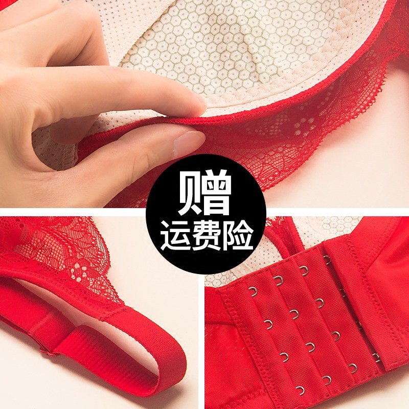 (40% off over 1 piece, 50% off over 2 pieces) Big Red Benming Year Underwear Set Women's No Steel Rings Push-Up Bra