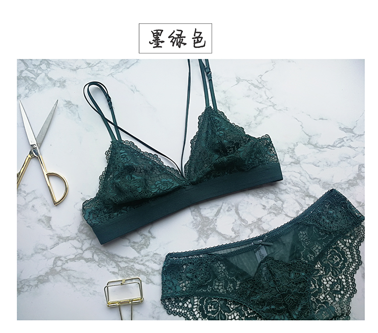 French Bralette Sexy Lace Green Hollow Steel Coil Liner Ultra-thin Large Brombo Non-sponge Lingerie Set
