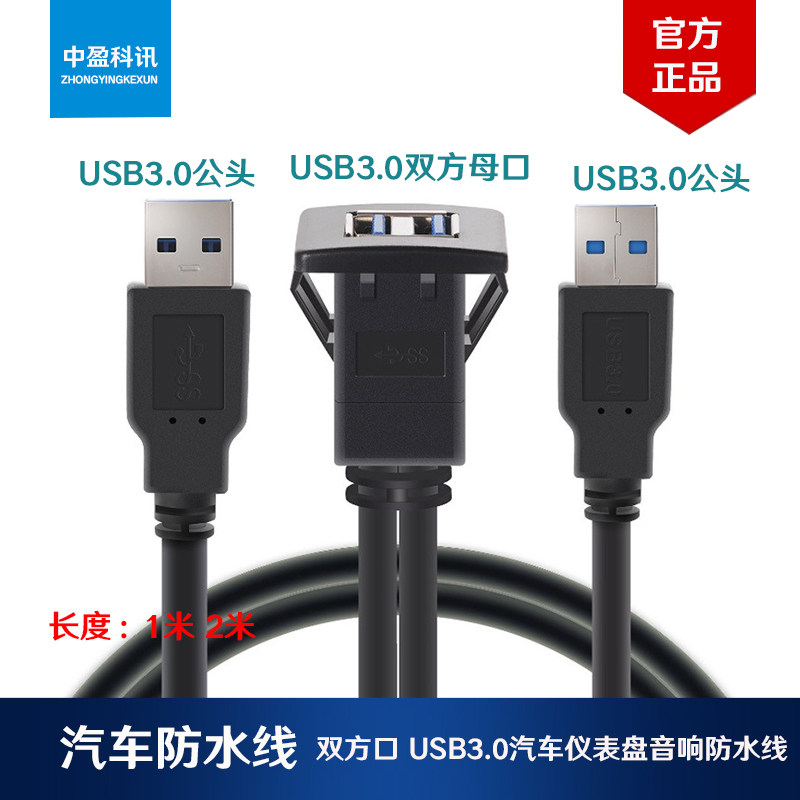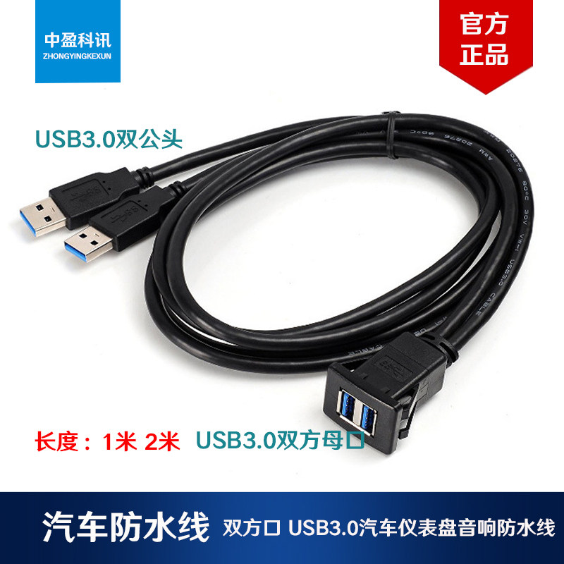 Both sides USB3 0 waterproof wire car dashboard sound extension cord ABS housing waterproof line 1-2 meters