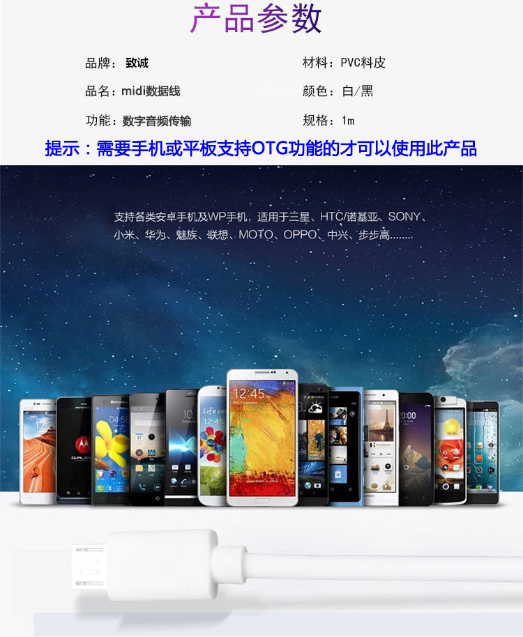 Electronic piano drum microphone sound card to MICRO data cable USB Android phone midi electric piano cable
