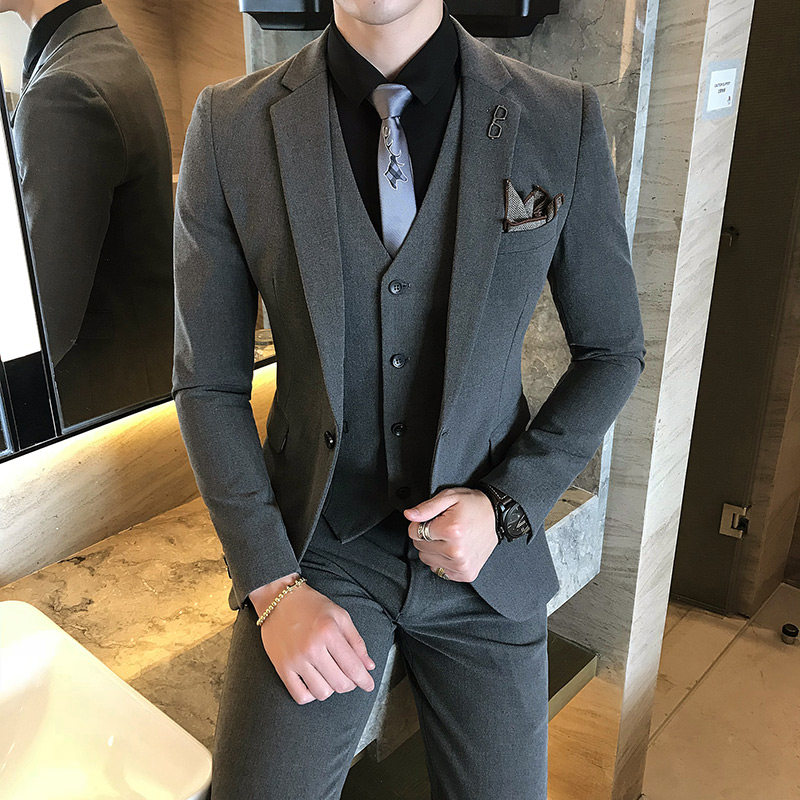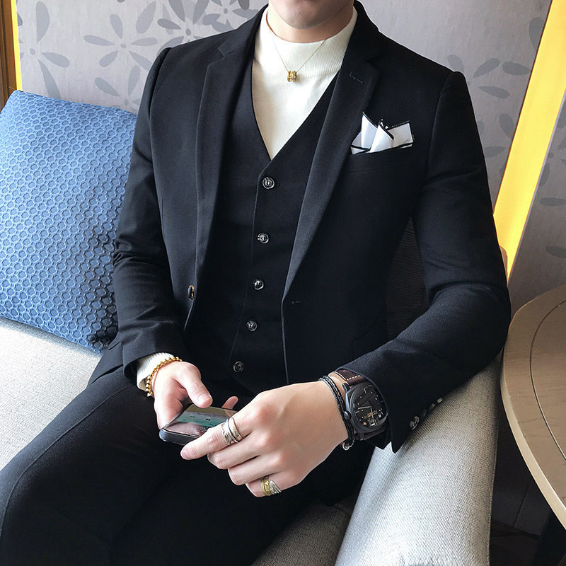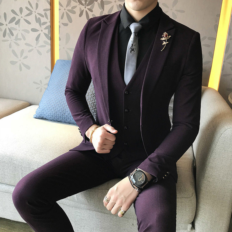 Casual West Suit Men's Youth Casual Korean Version Sashimi Three Sets Wedding Groom Suits Men Suit Professional West Suit