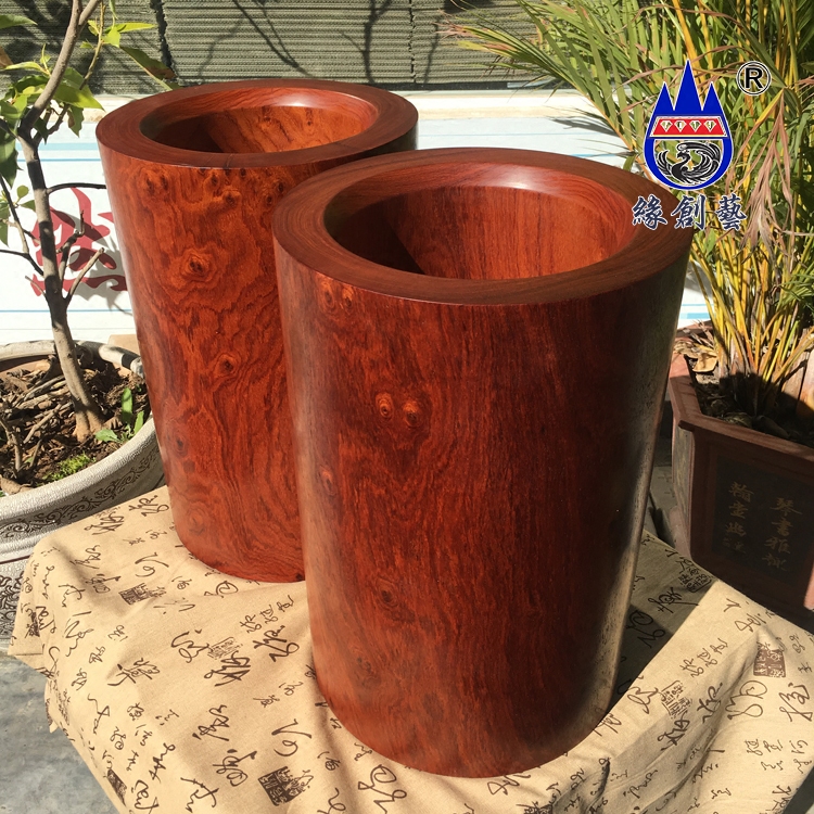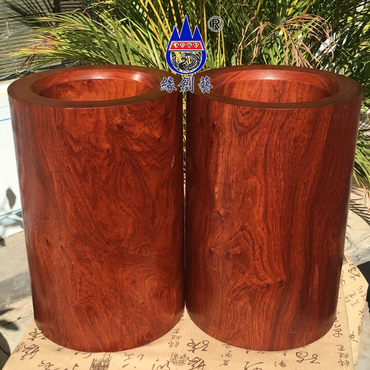 Mahogany oversized pen holder Myanmar pear whole wood one thing one picture storage tank Calligraphy and painting cylinder Wood carving old material ornaments