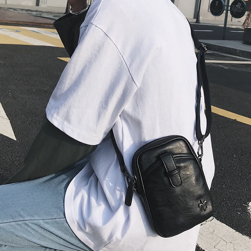 Trendy new fashion youth Small packet outdoor sports riding satchel Han version Leather Men Single Shoulder Bag Mobile Phone Bag