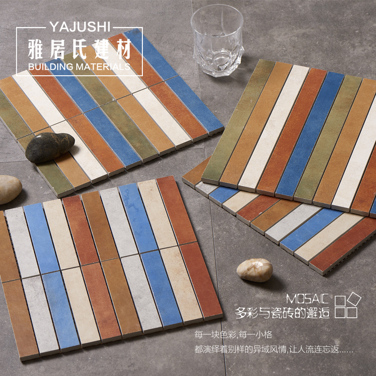 Hexagonal Antique Brick Ceramic Mosaic Magnetic Brick Skirting 5 colorful rock tiles Mediterranean threshold stone over Menstone