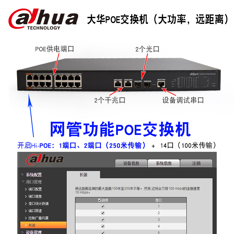Dahua POE Switch 16-port 24-way managed 100M network cable power supply DH-S1600C-16ET2GF-APWR