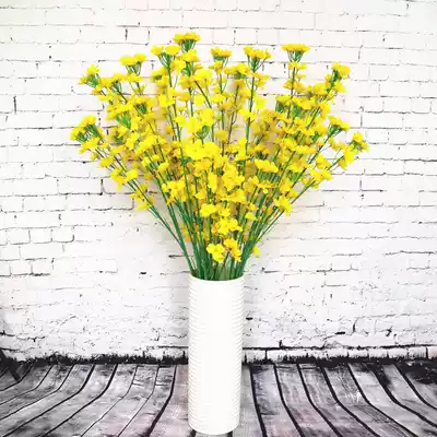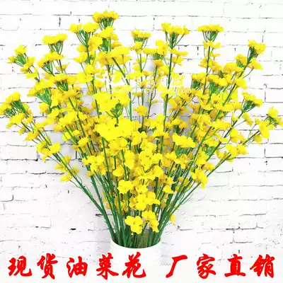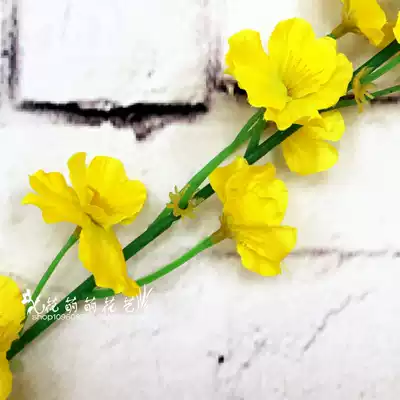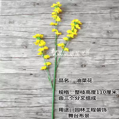 Simulation flower with leaf rape flower single fake flower artificial flower project wedding background high-grade silk flower club soft accessories