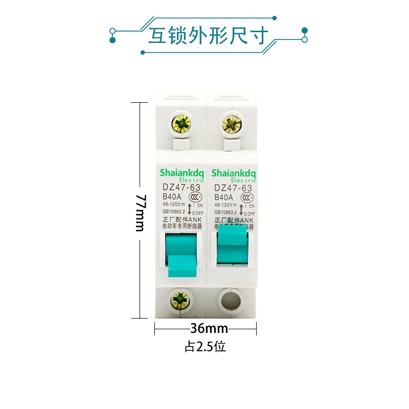 Electric vehicle tricycle special air switch 1P two-in-one-out power conversion 63A interlocking circuit breaker empty open