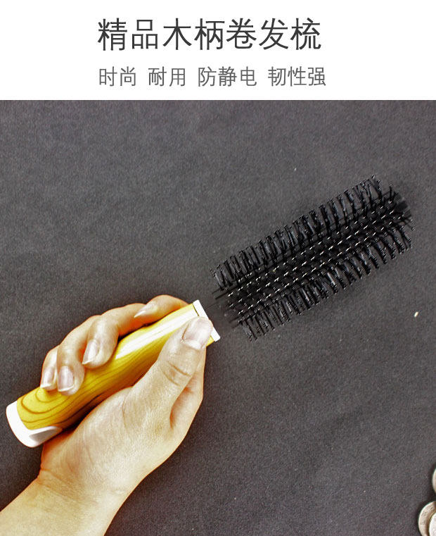 Rolling comb fashion curly hair comb does not hurt the hair inner buckle household anti-static hair salon wooden handle professional roller comb