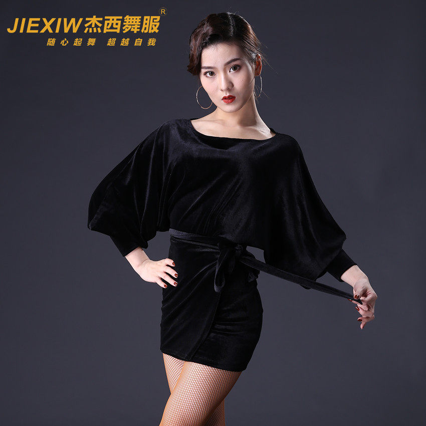 Latin Dance Dress Bat Sleeve New Professional Training Clothes Female Adult Cha Cha Bag Hip Practice Skirt Loose Autumn and Winter