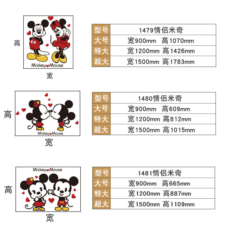 1479 Couple Mickey - black and white red, yellow and pink 1480 Couple Mickey - black and white red and yellow 1481 Couple Mickey - black and white red and yellow